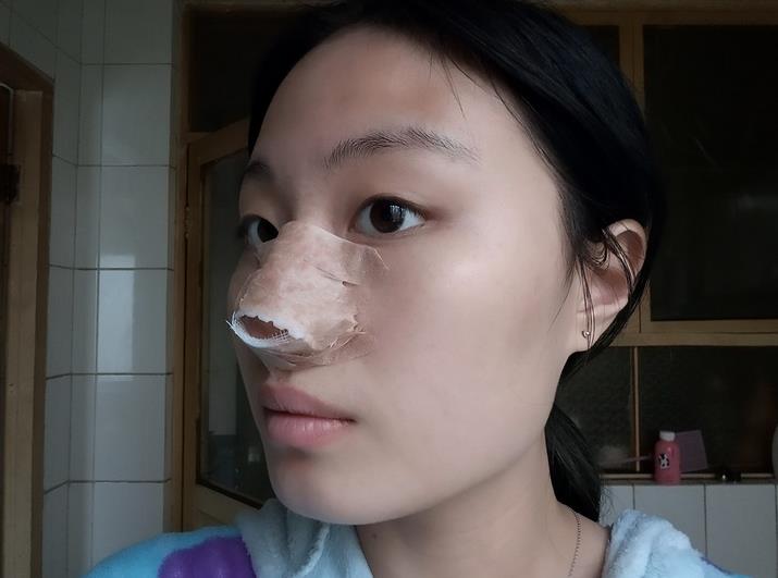 第三天,鼻子不舒服。畢竟我鼻子上蒙著紗布。手術(shù)后,我可以看到我的鼻子相當(dāng)好。雖然還沒(méi)看到腫,但看到鼻梁真的越來(lái)越高還是很激動(dòng)?,F(xiàn)在鼻子還是腫的,呼吸都不舒服,但是為了美觀可以忍受?,F(xiàn)在不能洗臉,因?yàn)閭谡床坏剿?,平時(shí)要注意不要碰,也不能做劇烈運(yùn)動(dòng),但是這幾天沒(méi)出門,請(qǐng)趕緊恢復(fù)。