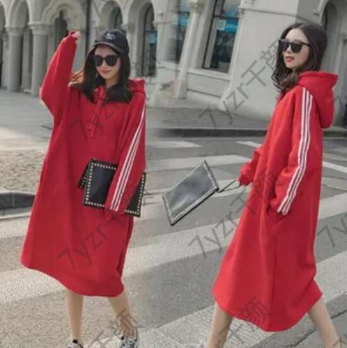 紅色連帽衛(wèi)衣裙,時尚雅致隨意搭配