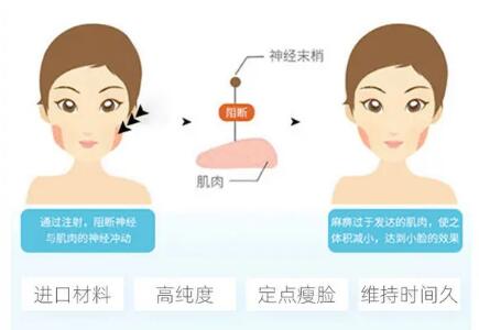 是一種神經(jīng)毒素,可以神經(jīng)和肌肉之間的神經(jīng)沖動(dòng),放松過度收縮的小肌肉。主要針對(duì)面部咬肌肥大,需要做好術(shù)后護(hù)理。一個(gè)月內(nèi)禁止面部按摩、熱敷、揉捏。一周后注射《評(píng)論》前早期可能出現(xiàn)咀嚼無力和酸痛。注射后6小時(shí)內(nèi),不宜洗臉、化妝、好奇或觸摸注射部位、運(yùn)動(dòng)。一周內(nèi)不吃辣、海鮮、煙酒。