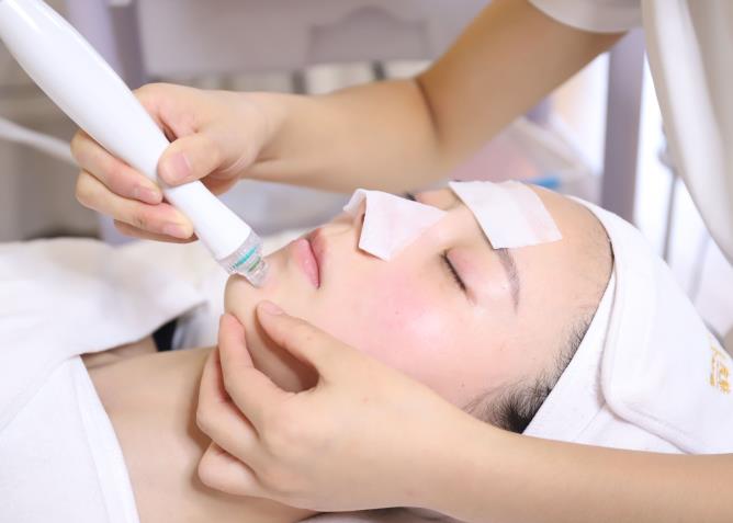 一般步驟呢,就是先是要卸妝,潔面,然后呢會給你做一段時間的熱風,就要打開毛孔,然后再就是用氣泡筆進行清潔了,清潔之后呢,再用剩下的那些調(diào)節(jié)頭做一些補水啊,精華導入啊,收縮毛孔,收緊皮膚啊等等類型的操作。
