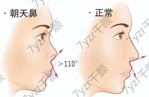 鼻子多數(shù)表現(xiàn)為過長,像鷹的鳥嘴一樣往下長,并伴隨著向下的旋轉(zhuǎn)。并且所謂的海鷗線過于突出,導(dǎo)致側(cè)面鼻孔、側(cè)方黑影短經(jīng)距離大于10毫米。